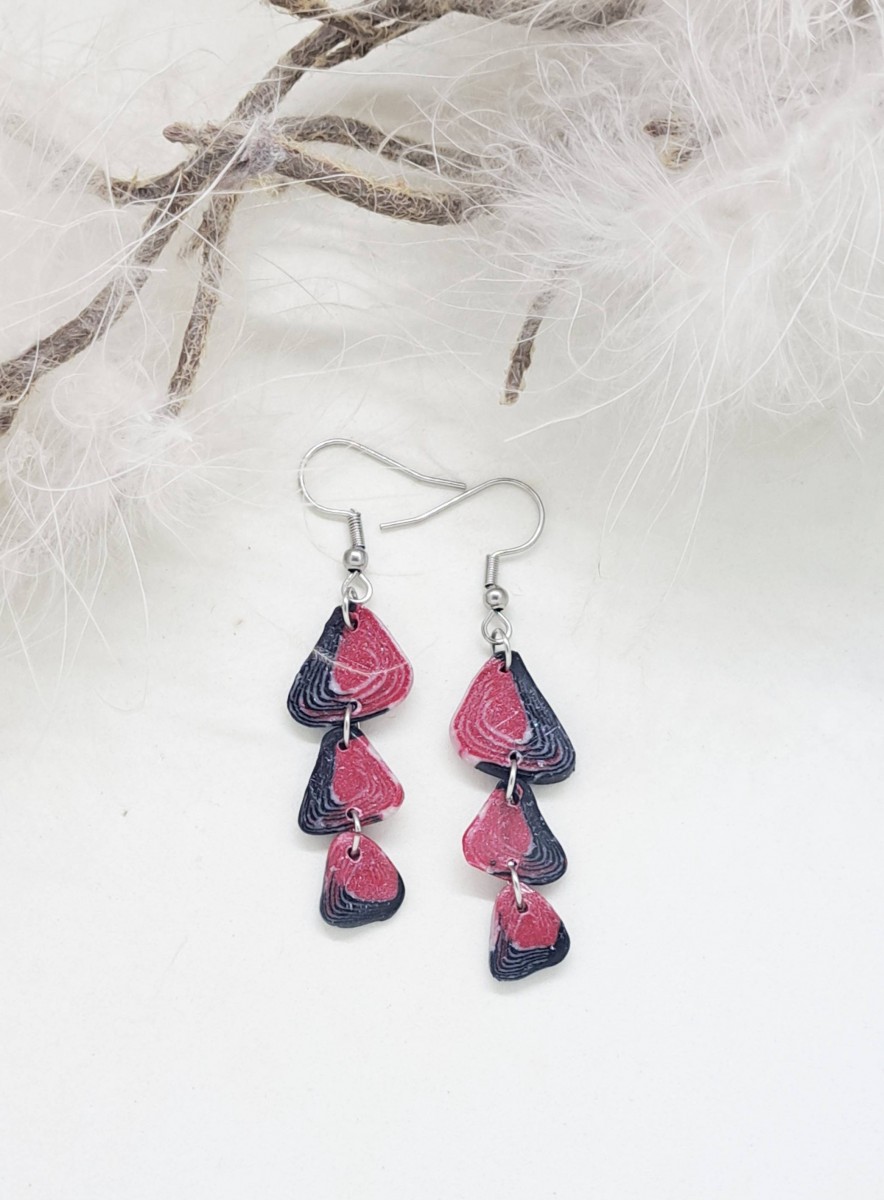 Náušnice - červeno-černé Cena: 110 Kč skl. číslo: NA0078 Náušnice z FIMO hmoty. Červeno-černé lístky, délka 3,5 cm. Afroháček ocel.